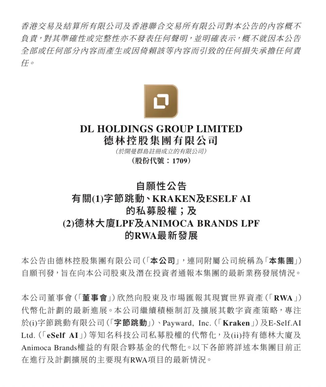 投資字節跳動?德林控股 RWA 代幣化科技巨頭股權,誓做亞洲 Robinhood
