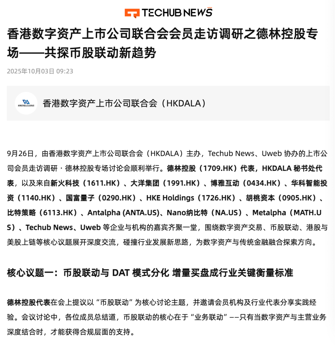 香港數字資產上市公司聯合會會員走訪調研之德林控股專場——共探幣股聯動新趨勢